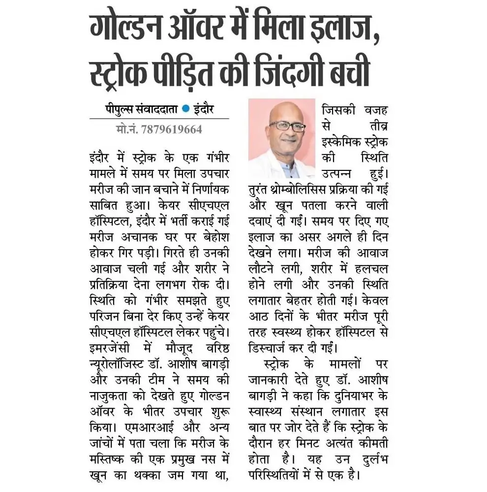 Treatment in the Golden Hour Saved the Life of a Stroke Victim News Coverage in People’s Samachar