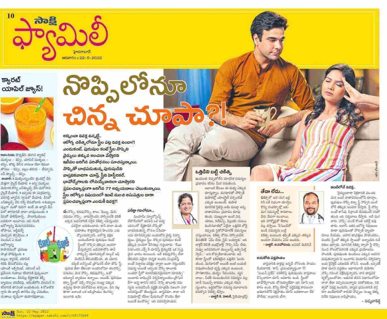 Article on Pain Management Difference between Male and Female by Dr. G Navodaya - Consultant General Medicine