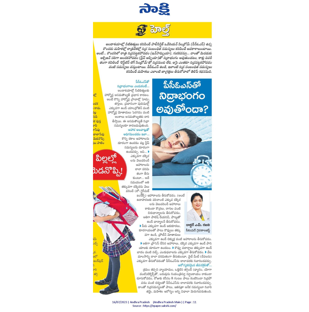 Article on PCOS by Dr M Rajini Consultant Gynecologist CARE Hospitals Banjarahills In Sakshi Family Page