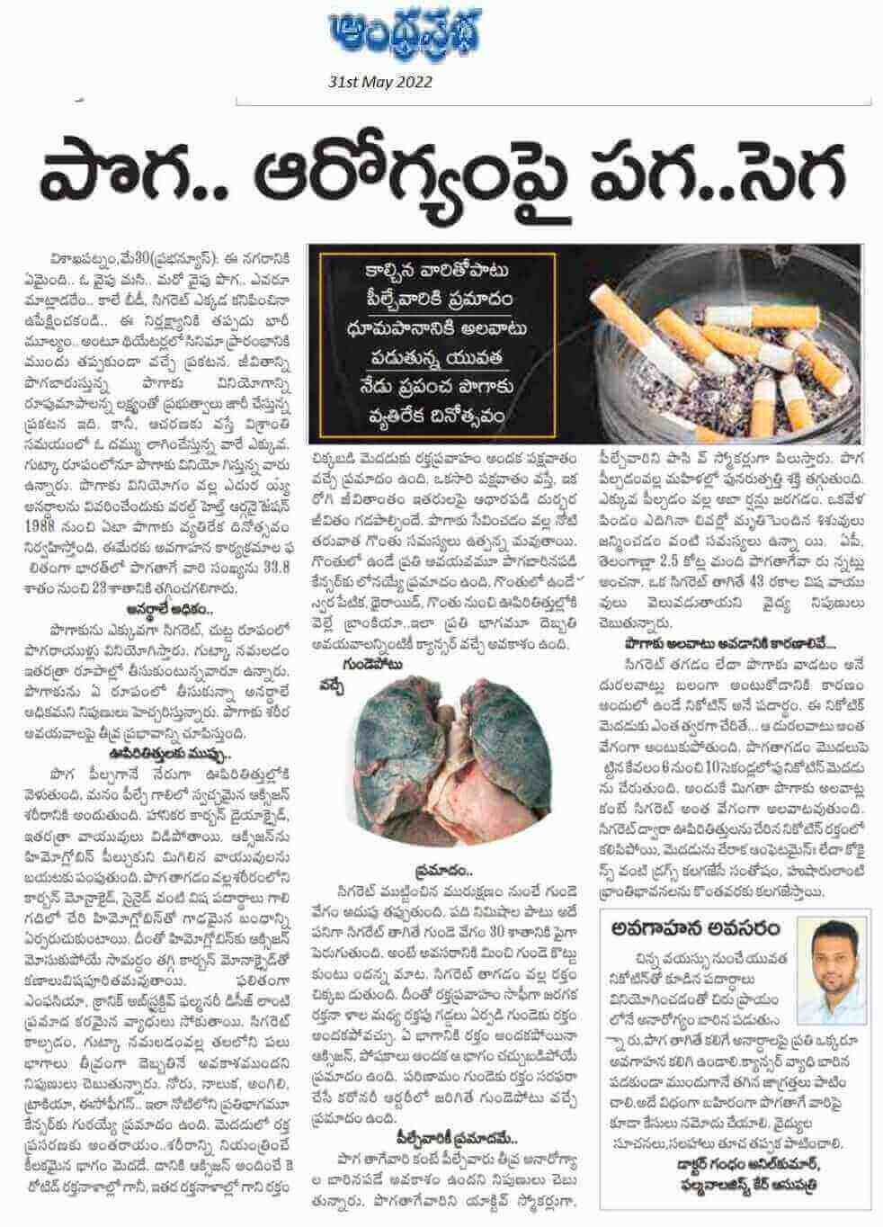 Article on World No Tobacco Day by Dr. G Anil Kumar - Consultant Interventional Pulmonologist