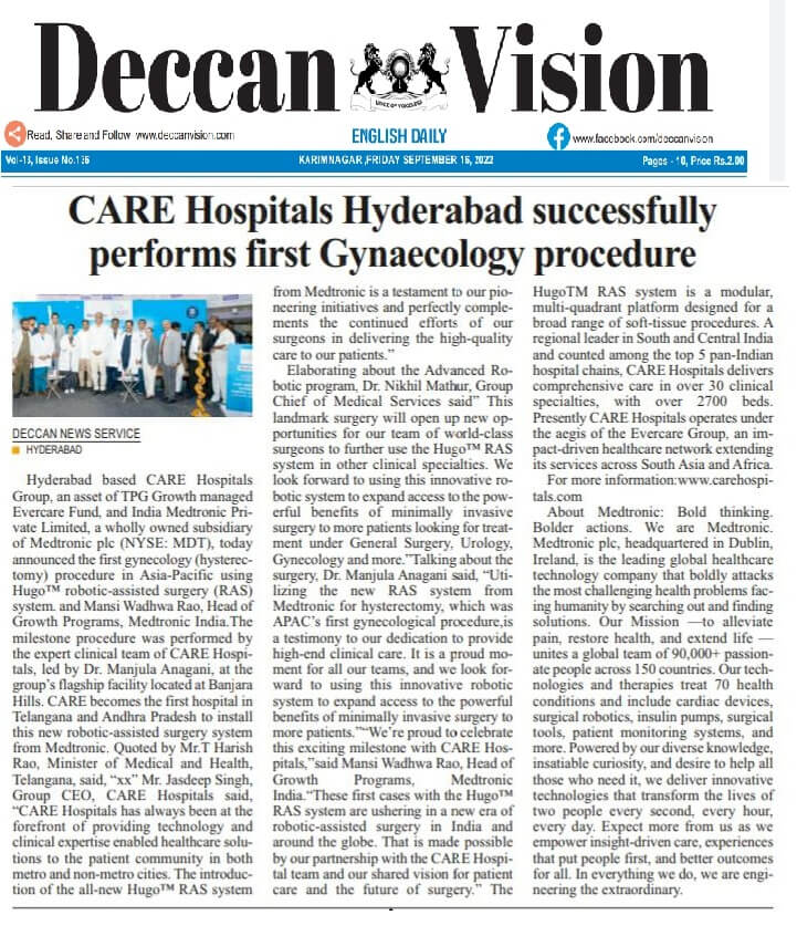 CARE Hospitals Advanced Robot Assisted Surgery Program Launch News Coverage in Deccan Vision