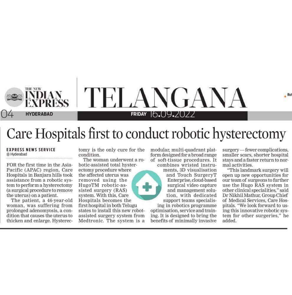CARE Hospitals Advanced Robot Assisted Surgery Program Launch News Coverage in The New Indian Express
