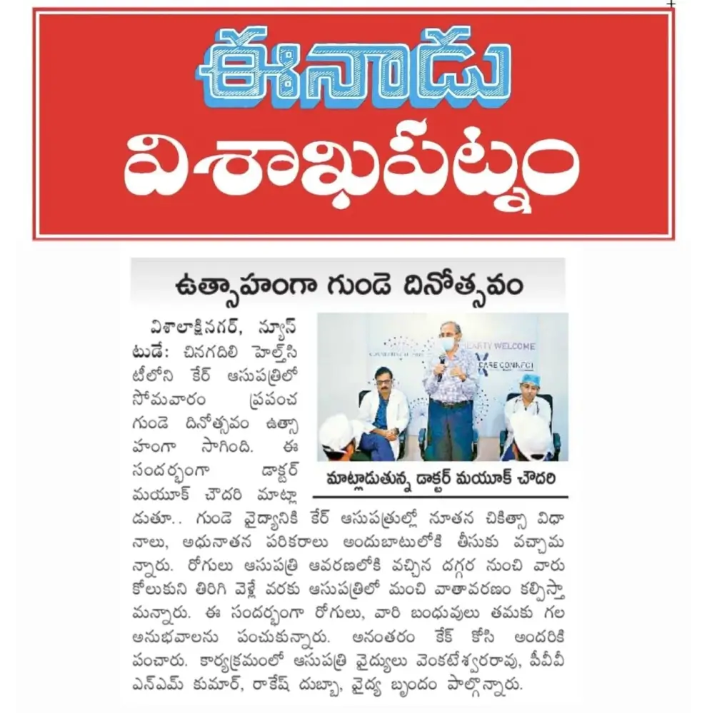 CARE Hospitals Vizag CARE Connect Program on the Occassion of World Heart Day News Coverage in Eenadu