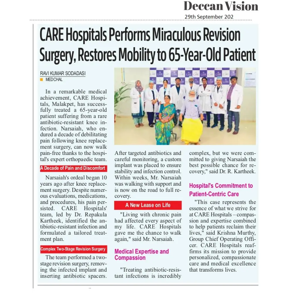 Comples Knee Surgery Performed at CARE Hospitals Malakpet News Coverage in Deccan Vision