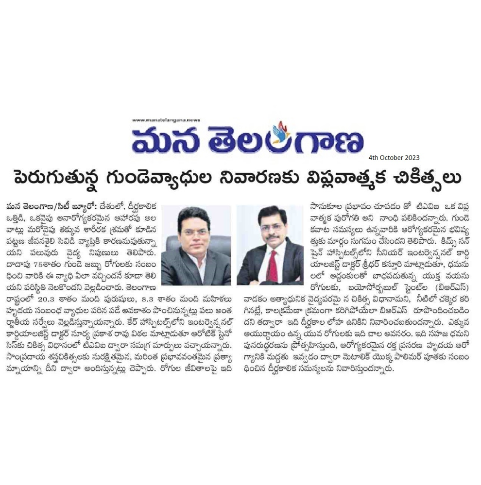 Dr. Surya Prakash Consultant Cardilogist CARE Banjara News Quote on Heart Issues in Mana Teleangana