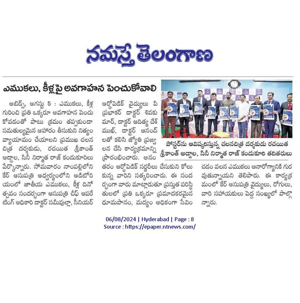National Bone and Joint Day Observed at CARE Hospitals Nampally, News Coverage in Namasthee Telangana