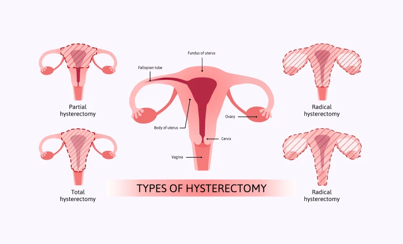 The different types of hysterectomy surgeries are performed based on the medical reason, the degree of severity, and the preferences of the patient. The following are the common hysterectomy types: